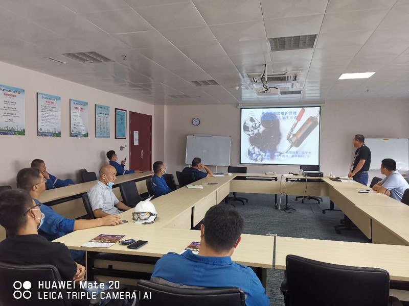 2020年9月3日,我司受惠州中海壳牌ES技术部邀请举行了关于加脂器应用的技术交流会。参会人员有ES技术部、EM各部电气工程师所有工作人员,并由我司技术总监康殿勇先生演讲交流。