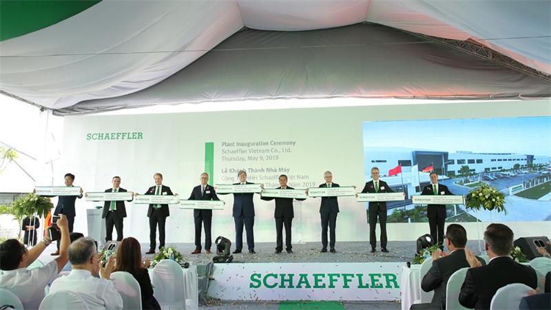 ?? 舍弗勒越南新工厂举行落成典礼。出席典礼的嘉宾包括工厂经理Seunghun Park、亚太区首席运营官克劳斯·穆勒、舍弗勒集团首席运营官安德列亚斯·希克、德国驻越南总领事Andreas Siegel以及舍弗勒集团监事会主席乔治·F.W·舍弗勒、同奈省人民委员会主席Dinh Quoc Thai、亚太区首席执行官赫尔穆特·勃德、舍弗勒集团工业米兰(中国)首席执行官斯特凡·施平德勒博士和亚太区工业米兰(中国)总裁马丁·施赖伯(从左至右)。