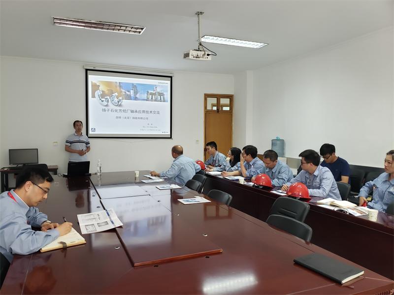 2019年5月19日,技术团队组织了扬子石化芳烃厂交流会,解决了扬子石化芳烃厂二甲苯车间水泵轴承安装使用异常问题及塔底泵轴承7313-B-MP-UA失效问题。现场确认塑料厂聚乙烯车间造粒机轴承型号并成功替换原使用的NSK品牌。同时成功组织了扬子石化炼油厂轴承应用技术交流。