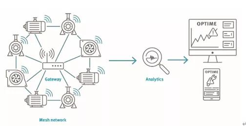 OPTIME可以在没有任何状态监测专业知识的情况下安装和执行初始操作,并且可以在一天的时间内轻松设置数百个测量点。振动传感器通过螺钉或胶粘剂连接到受监测的资产设备,并通过随附的应用程序激活,该应用程序通过近场通信(NFC)与它们连接。所有已安装的传感器相互之间和网关进行自主通信,从而形成了专用网状网络,该网状网络是当今工业界使用的最可靠和最节能的IoT网络类型。网状网络中的传感器通过网关将机器KPI数据以及原始振动和温度数据传输到舍弗勒IoT中心。中心分析数据,结果显示在应用程序中,该应用程序支持维护团队和工厂操作员常使用的各种终端设备。