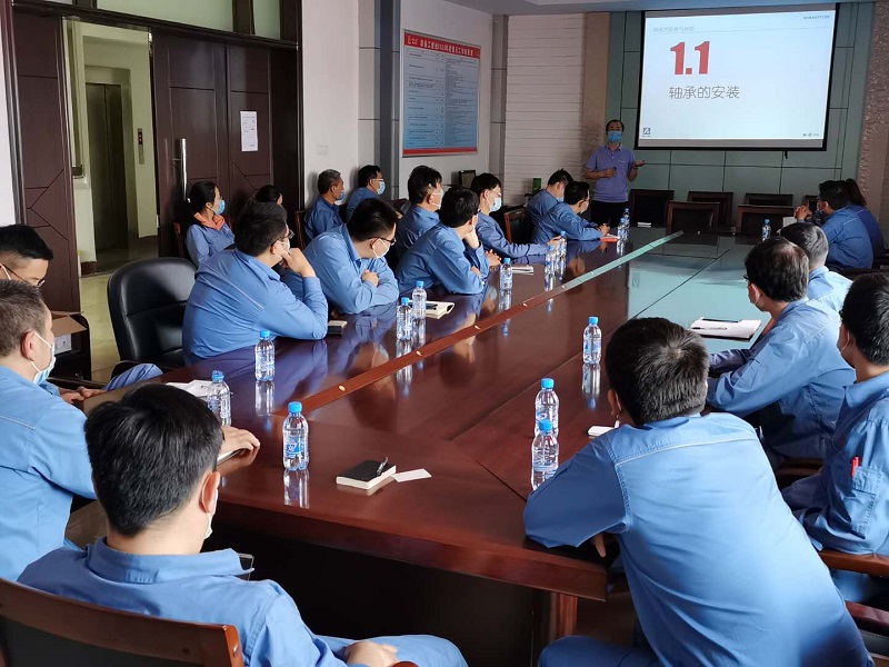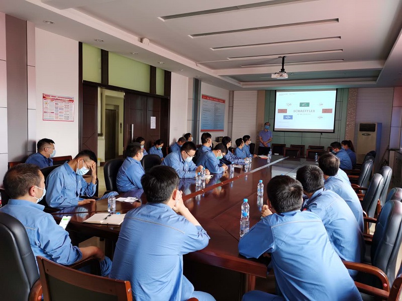 交流会议讲师为我司资深技术工程师殷工,内容涵盖舍弗勒公司介绍、轴承的安装与拆卸,轴承的润滑,常见的失效案例的分析等。