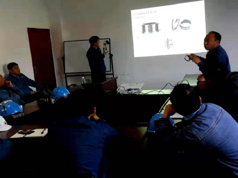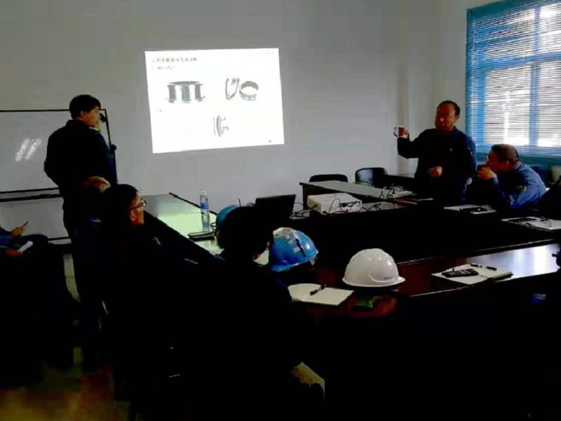 此次会议主要讲解并分析了轴承安装不当、假性布氏压痕、轴承打滑、润滑不良、轴承噪音、轴向预紧等原因及整改措施。对于丁工的讲解和分析,大家纷纷点头认同。