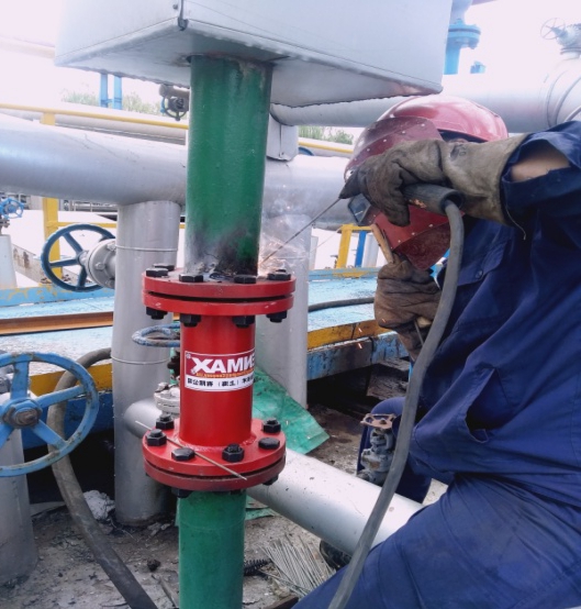 2018年6月10日在中国石油哈尔滨石化分公司催化装置外甩油浆冷却器E—211水箱安装一台恩曼CPRS工具4X4。从施工到安装完成用了3个小时。安装时检查水箱内冷却盘管结垢情况比较严重,油浆盘管外壁附着白色的硬质水垢。运行2个月后查看,油浆弯管外壁水垢明显有松软并开始脱落。