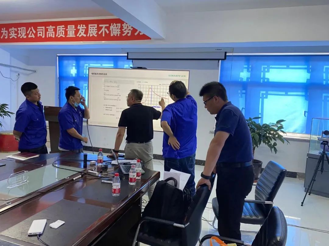 交流会上舍弗勒北方区经理田崇辉和张明义、张之滨两位高级工程师分别与佳电设计研发部、市场部、质保部等部门就常用轴承类型及布置,轴承的选型计算方法,电机运输过程中转子的固定方式等多个问题进行了技术讲解与交流。